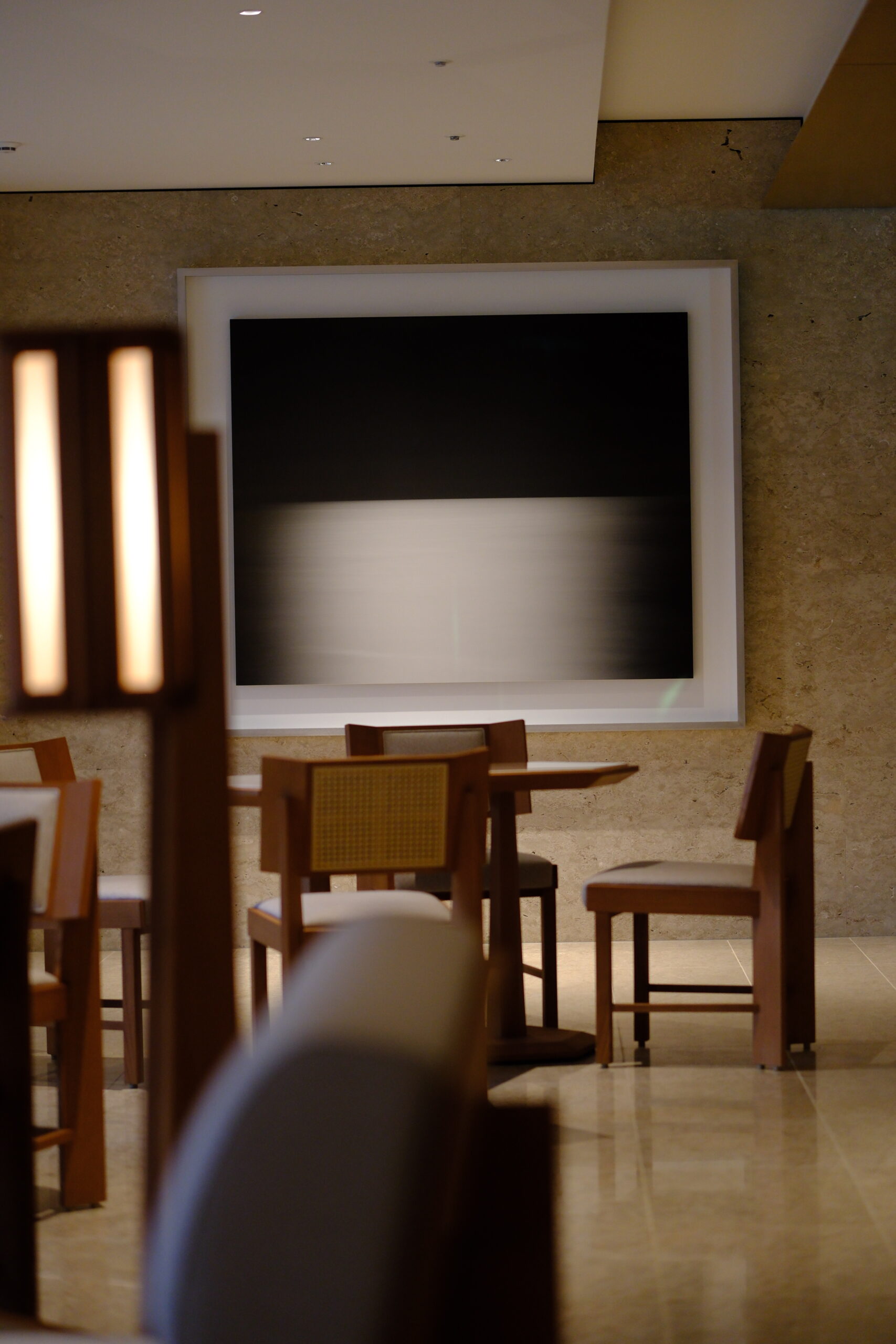 Sugimoto’s presence is also felt throughout. The executive lounge is framed by his works, while a gold-toned, Japanese-style panel depicting pine and bamboo sits in conversation with his iconic Seascape, welcoming guests just before they ascend to their rooms.